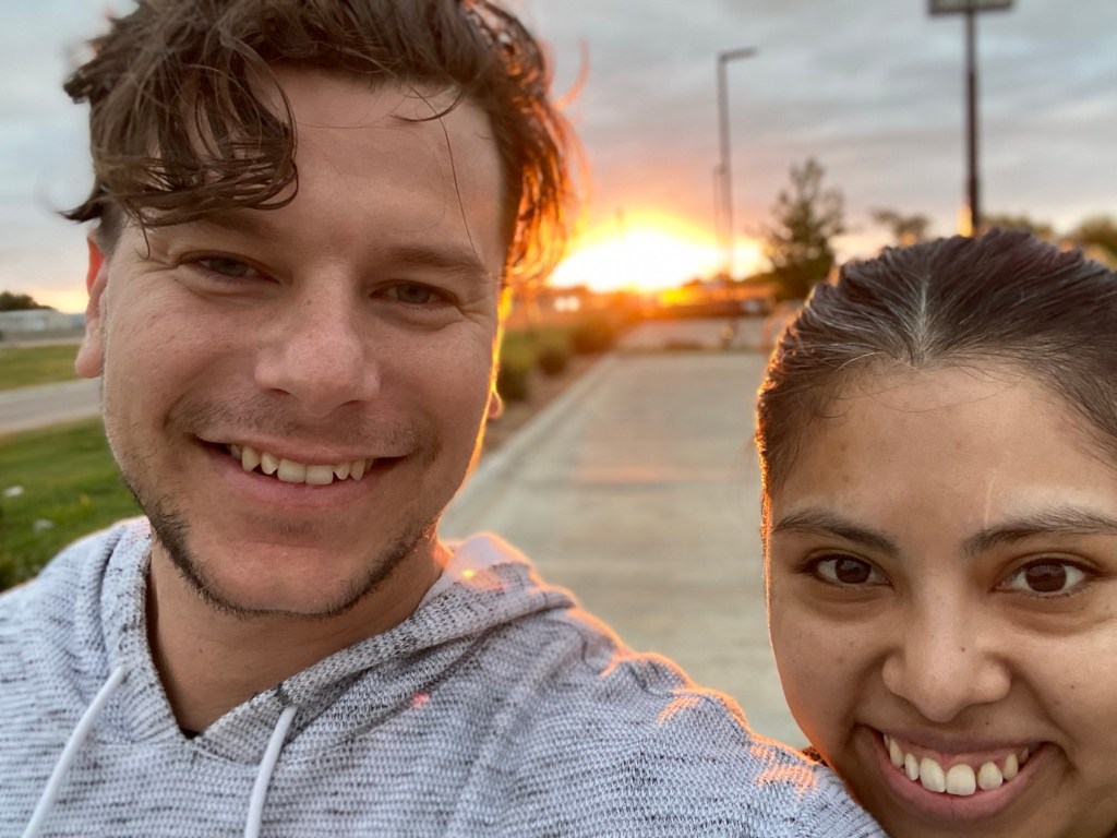 If my intuition was operating at full capacity and accurate, I’m sure Starbuck’s employees were watching out their windows curious about this couple that just randomly walks across an empty parking lot to watch the sunrise just a little closer than under their canopy (or awning—whatever). We stopped and just stared for a good 10-15 minutes as the the earth rotated for the sun to rise above our horizon and it felt so good to soak it in, I encourage it!