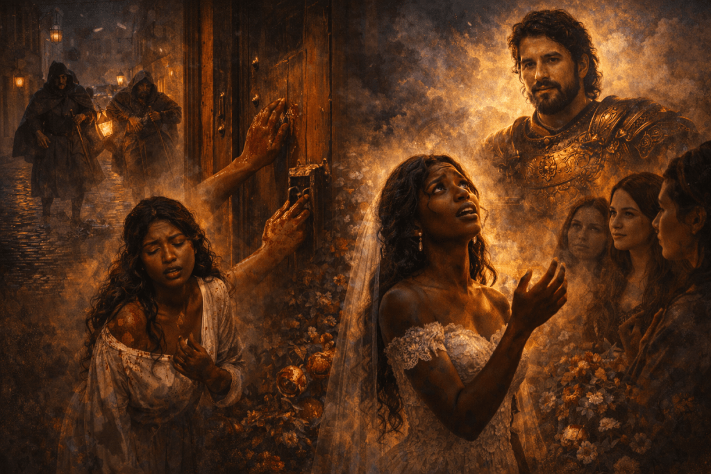 Like the bride, the disciples in the garden fell asleep while Jesus was near. And when they rose, He was gone—taken, silent, suffering. Their delay led to absence and loss.